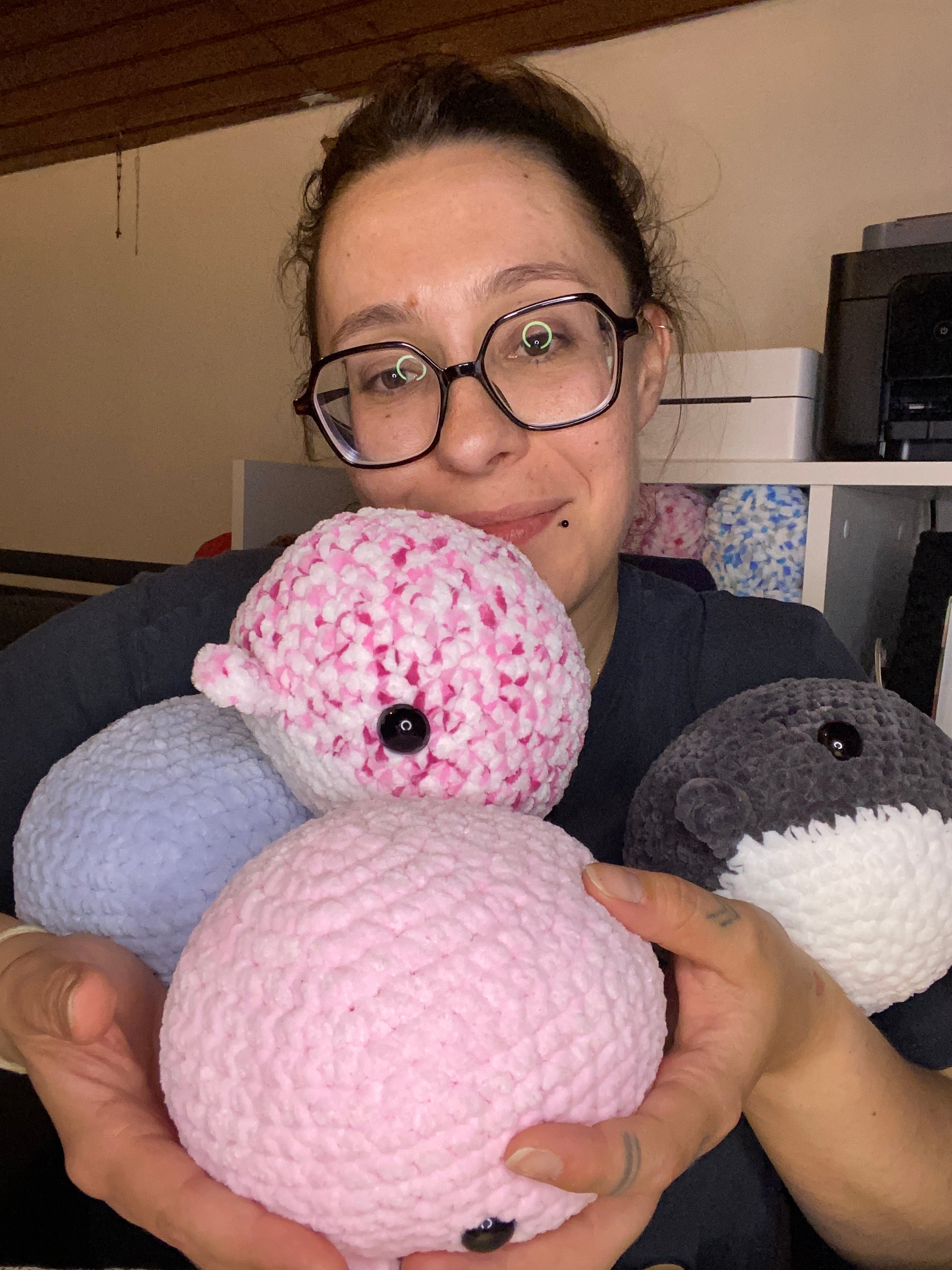 Cette petite baleine au format squishy est crochetée à la main avec amour, pour fondre de tendresse à chaque pression. Moelleuse, réconfortante et super mignonne, c’est la compagne idéale pour chasser les vagues de stress ! 💙