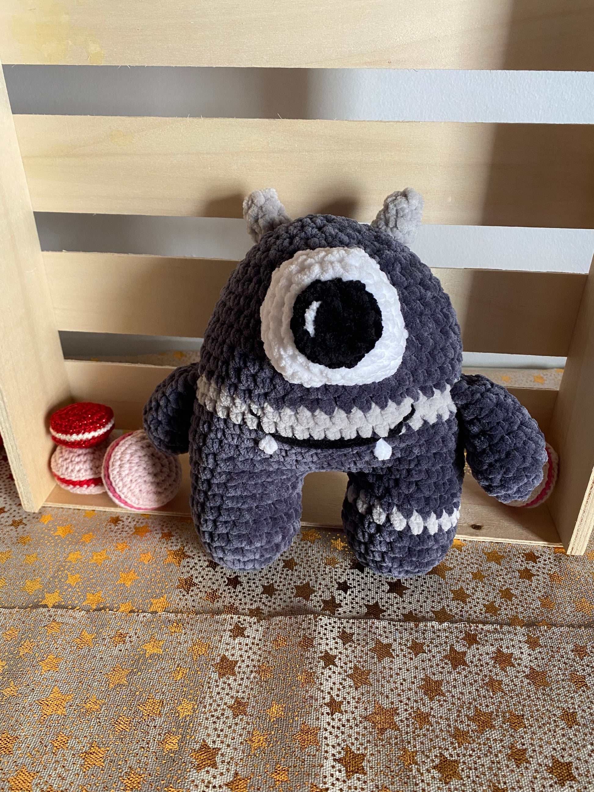 Ce petit cyclope tout doux est crocheté à la main avec soin. Farfelu, rigolo, mais surtout attachant, il saura veiller sur toi d’un seul regard ! 🧶💚