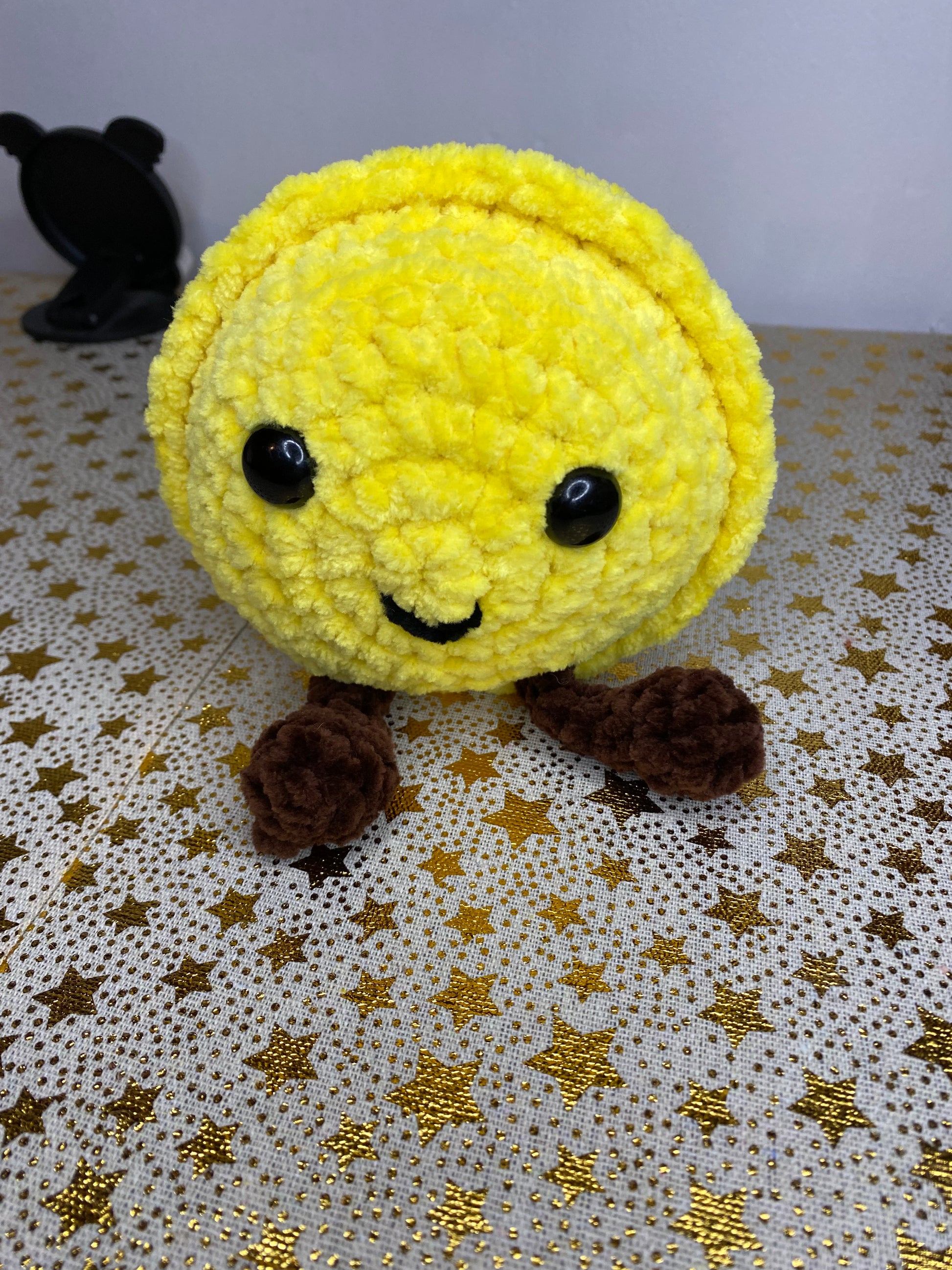 Crocheté à la main avec amour, ce macaron rigolo et moelleux est aussi mignon qu’original. Avec ses petits pieds qui dépassent, il a l’air tout droit sorti d’un monde sucré et farfelu. Parfait pour une déco décalée, un cadeau fun ou un câlin gourmand ! 👣