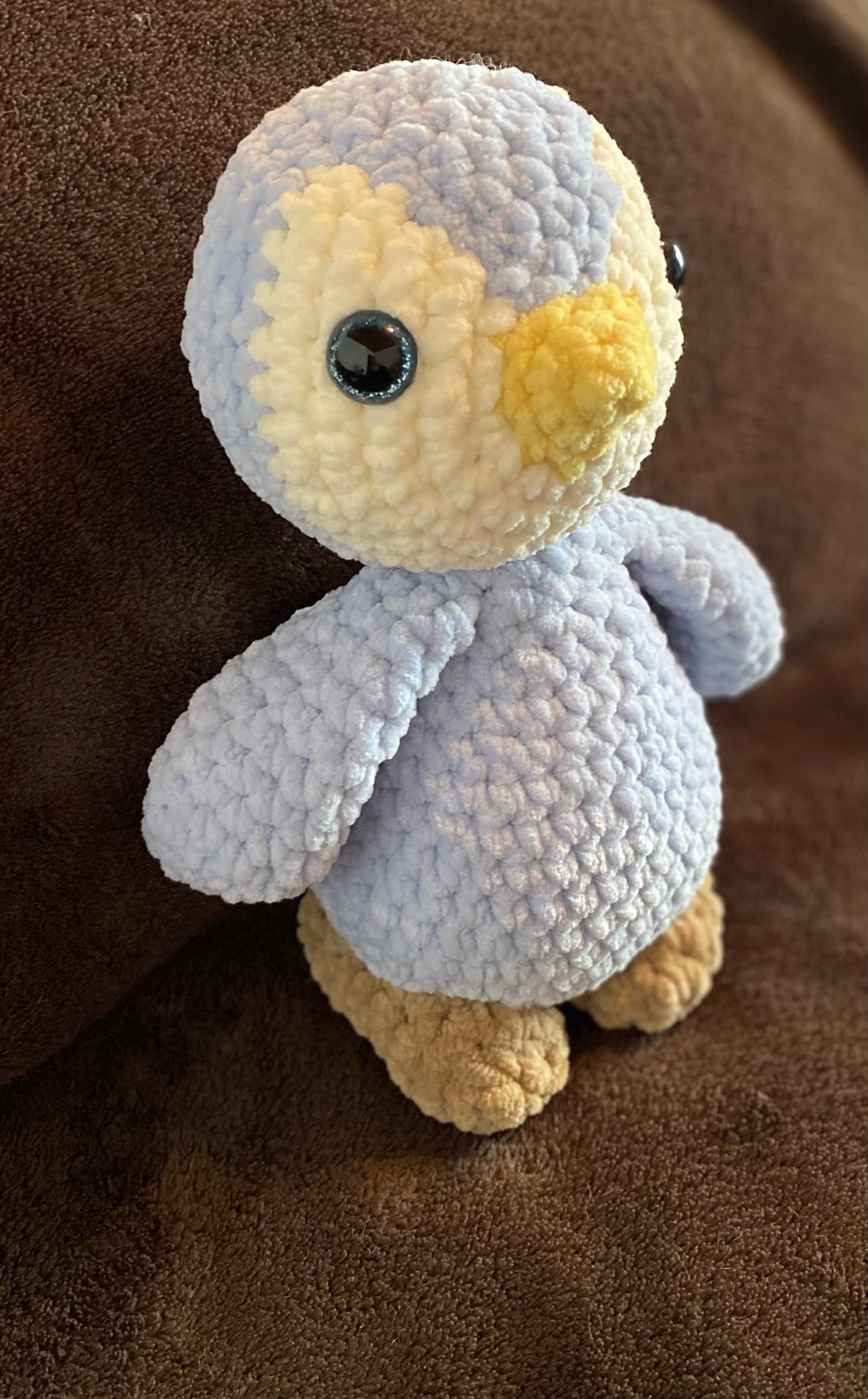 Tout rond et trop chou, ce petit pingouin crocheté est prêt à glisser droit dans ton cœur 💙 ! Avec son ventre tout doux et son regard adorable , il apportera une touche givrée de tendresse à ta déco ou à tes câlins d’hiver ✨.